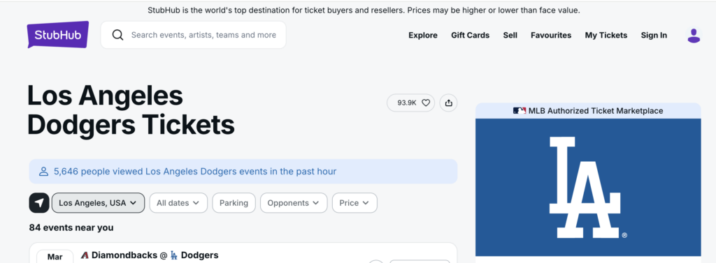 現在、SeatGeekはMLBの公式認定リセールマーケットプレイスであり、ドジャースの公式サイトからも直接リンクが張られています。偽造チケットのリスクがほぼなく、試合が中止になった場合は全額返金される安心感があります。